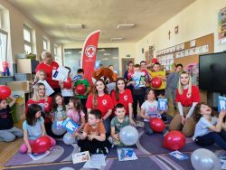 Licealiści na zajęciach edukacyjnych u przedszkolaków