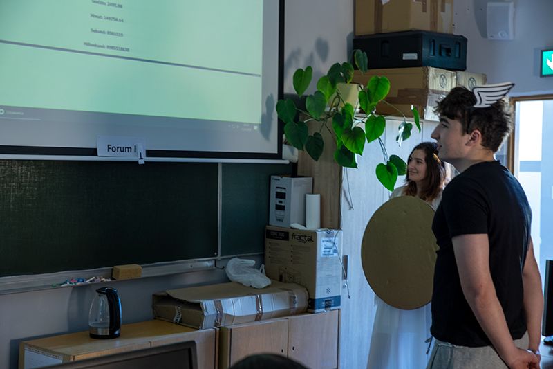 Ważnym elementem były prezentacje projektów uczniów klas piątych, obejmujące aplikacje do obliczeń, zarządzania informacjami i tworzenia gier. Oprawę muzyczną przygotował Alex z klasy 4T.