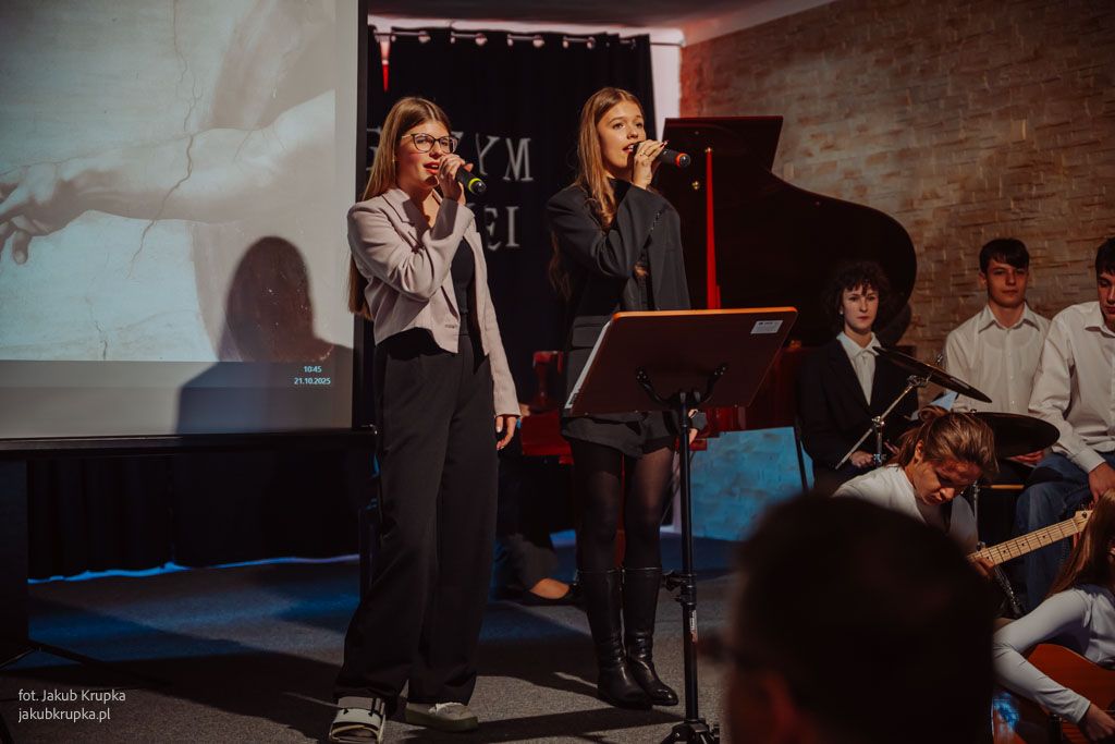 Podczas uroczystości wystąpił szkolny zespół muzyczny, który wzruszająco wykonał pieśni religijne i utwory inspirowane nauczaniem św. Jana Pawła II, obejrzeliśmy archiwalne nagrania – moment wyboru Karola Wojtyły na papieża w 1978 roku, jego pielgrzymki do Polski i spotkania z wiernymi. Ponadto prowadzący uczniowie z zaangażowaniem odczytali najważniejsze wydarzenia z życia Karola Wojtyły – od dzieciństwa w Wadowicach, przez lata kapłaństwa, aż po pontyfikat w Watykanie.