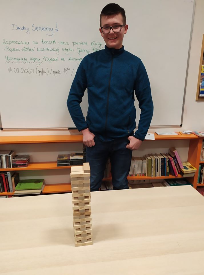 Jenga to pierwsza gra w ramach wydarzenia „II Turniej Mistrza Gier Planszowych – Lubartów 2020”. Rozegrano go 7 lutego, a przystąpiło 10 osób. Zwycięzcą został Mateusz Budzyński. Turnieje co miesiąc będzie organizował Lubartowski Ośrodek Kultury i Klub Fantastyki „Zielony Smok”. Kolejny turniej dla miłośników gier planszowych już w marcu.