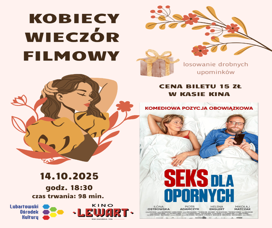 Po raz kolejny na Kobiecy Wieczór Filmowy zaprasza Lubartowski Ośrodek Kultury. 14 października o godz. 18:30 do obejrzenie w kinie Lewart film „Seks dla opornych”.