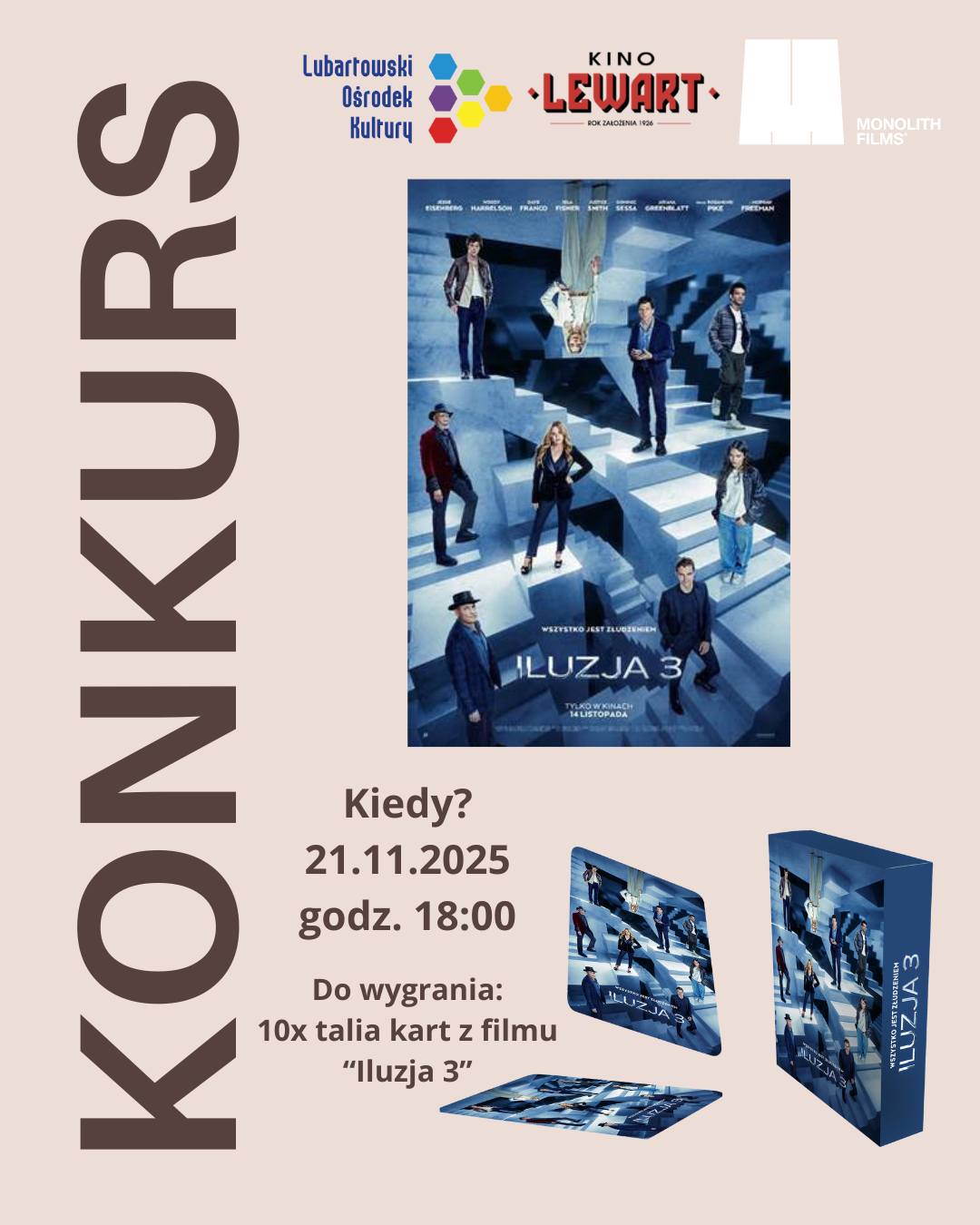 Należy przyjść na film „Iluzja 3” 21 listopada o godz. 18:00, a przed samym filmem odbędzie się losowanie 10 nagród.