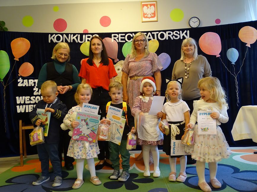 Na zakończenie konkursu wszyscy uczestnicy otrzymali dyplomy i książki jako pamiątkę za piękne występy. Konkurs miał wyjątkowy charakter i stał się prawdziwym świętem poezji w naszym przedszkolu. Szczególne podziękowania składamy pani Wioli Matyjaszczyk z Filii Nr 1 Miejskiej Biblioteki Publicznej, która od lat współpracuje z naszym przedszkolem i zawsze chętnie angażuje się i wspiera nas w wielu wydarzeniach.