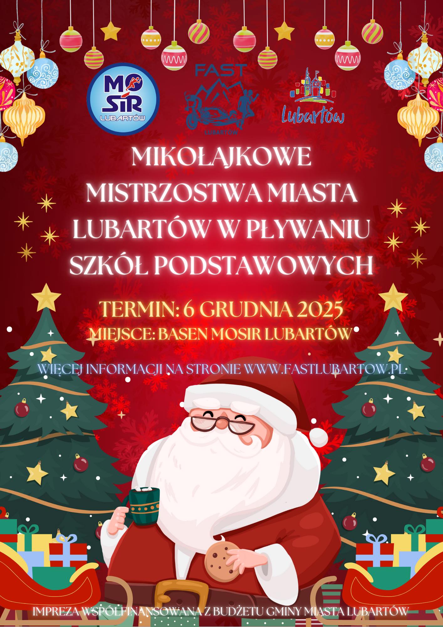 Forum Aktywności Sportowo-Turystycznej FAST wraz z Miejskim Ośrodkiem Sportu i Rekreacji w Lubartowie serdecznie zapraszają na „Mikołajkowe Mistrzostwa Miasta Lubartów w pływaniu szkół podstawowych”, które odbędą się 6 grudnia na pływalni w SP 3. Wstęp bezpłatny.