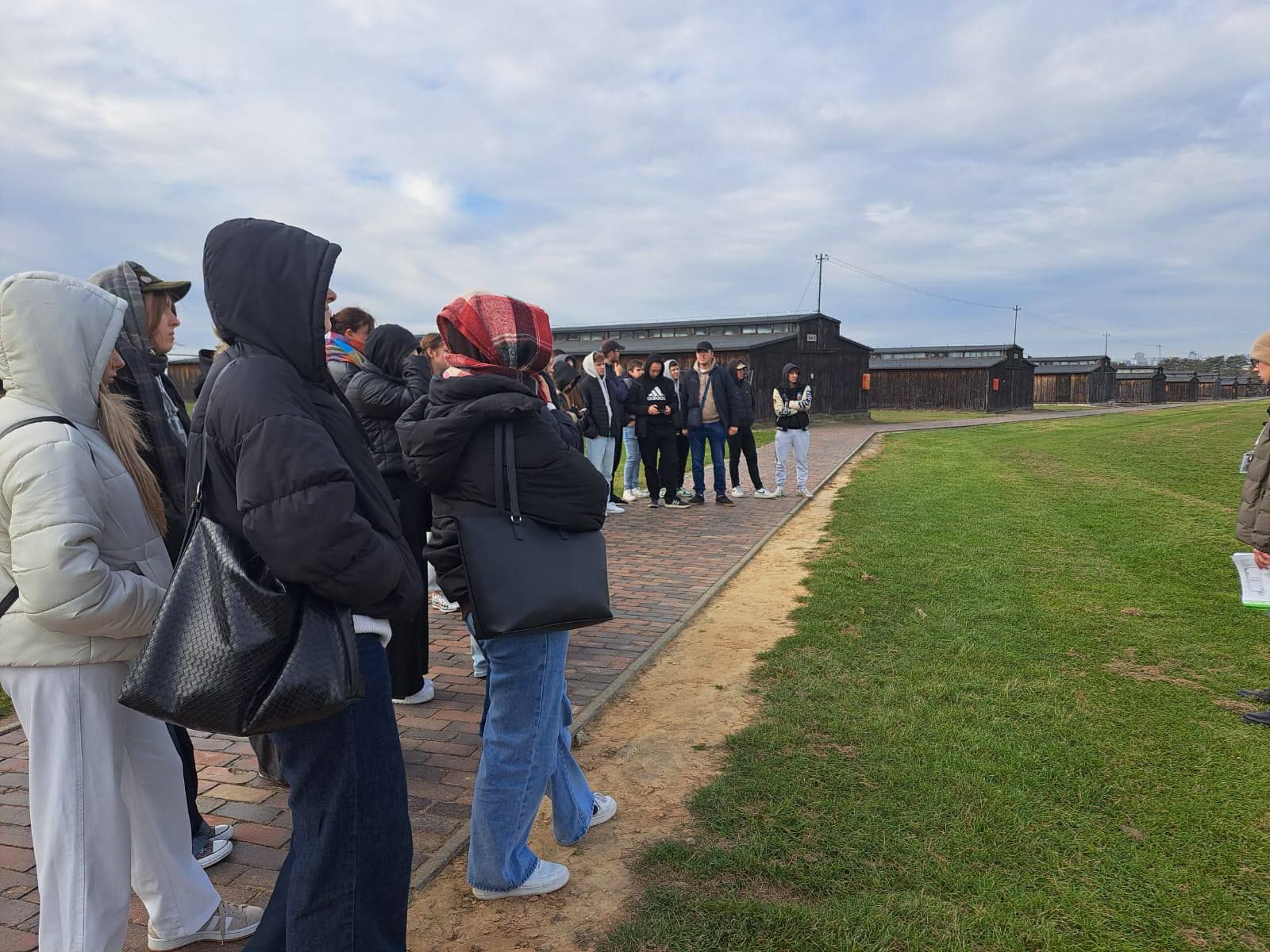 Uczniowie z trzech klas technikum zawodowego 5TEK, 5TB oraz 4TEK uczestniczyli w Miejscu Pamięci w podsumowaniu projektu edukacyjnego dotyczącego tematyki Holocaustu, który był realizowany w szkole w oparciu o zasoby biblioteki szkolnej. Pobyt w miejscu pamięci zbrodni Holocaustu pozwolił uczniom lepiej zrozumieć skalę tragedii oraz losy ofiar wielu narodowości podczas II wojny światowej, był dla wszystkich poruszającym doświadczeniem, które wzbudziło refleksję nad wartością życia, godności i praw człowieka. Opiekunami wyjazdu byli nauczyciele historii: Ziemowit Widerski i Ewa Dziadko.