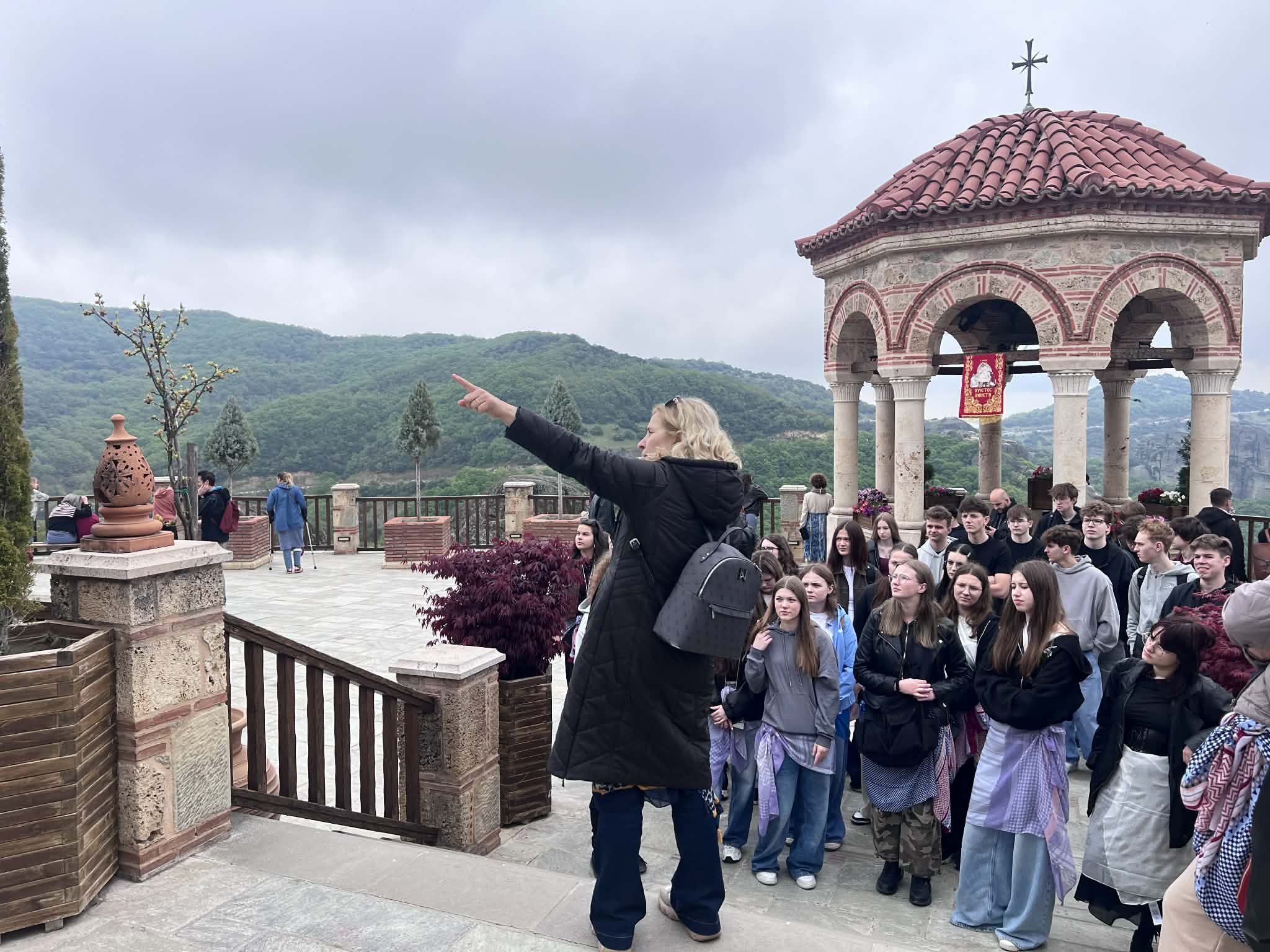 Drugiego dnia odwiedziliśmy pracownię ikonopisarstwa bizantyjskiego, gdzie poznaliśmy techniki tworzenia ikon oraz przeprowadziliśmy zabawę z nagrodami. Jadąc na spotkanie z lokalnym przewodnikiem do monastyru, który powstał w XVI w. mijaliśmy Meteorski „Las skalny” wpisany na światową listę dziedzictwa UNESCO. Widok klasztorów położonych na wysokich, skalnych formacjach zrobił na nas ogromne wrażenie. Dowiedzieliśmy się, jak powstawały te niezwykłe budowle i jak wyglądało życie mnichów w tak trudno dostępnych miejscach – i co więcej – jak wygląda ich dzisiejsza posługa! Następnie odwiedziliśmy miejsce bitwy pod Termopilami. To właśnie tam garstka Spartan stawiła opór potężnej armii perskiej. Upamiętnieniem tego historycznego wydarzenia jest pomnik króla Sparty- Leonidasa.