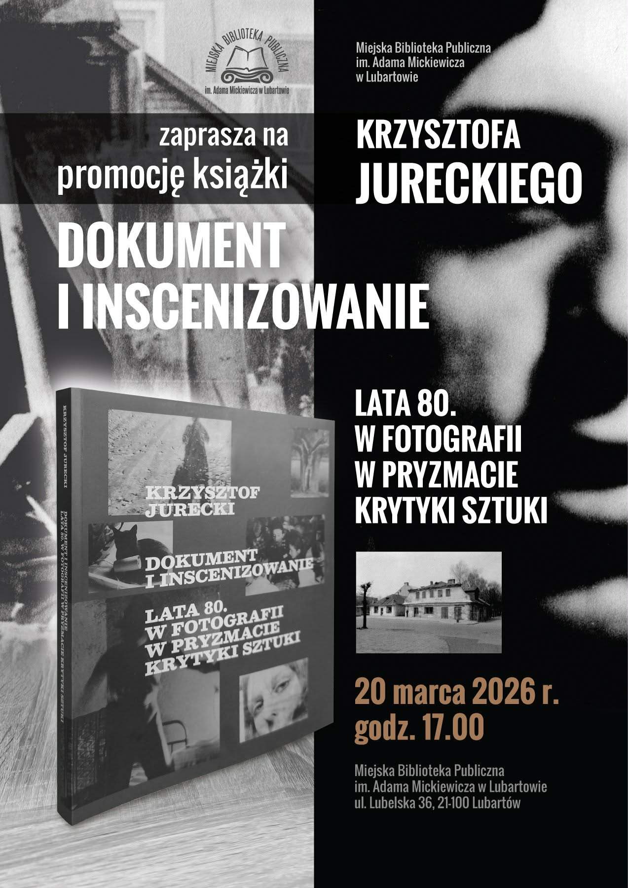 W Miejskiej Bibliotece Publicznej im. Mickiewicza 20 marca o godz. 17:00 odbędzie się spotkanie połączone z promocją książki „Dokument i Inscenizowanie. Lata 80. w fotografii w pryzmacie krytyki sztuki” Krzysztofa Jureckiego – krytyka, historyka oraz kuratora sztuki, doktora nauk humanistycznych. Członka honorowego Związku Polskich Artystów Fotografików.