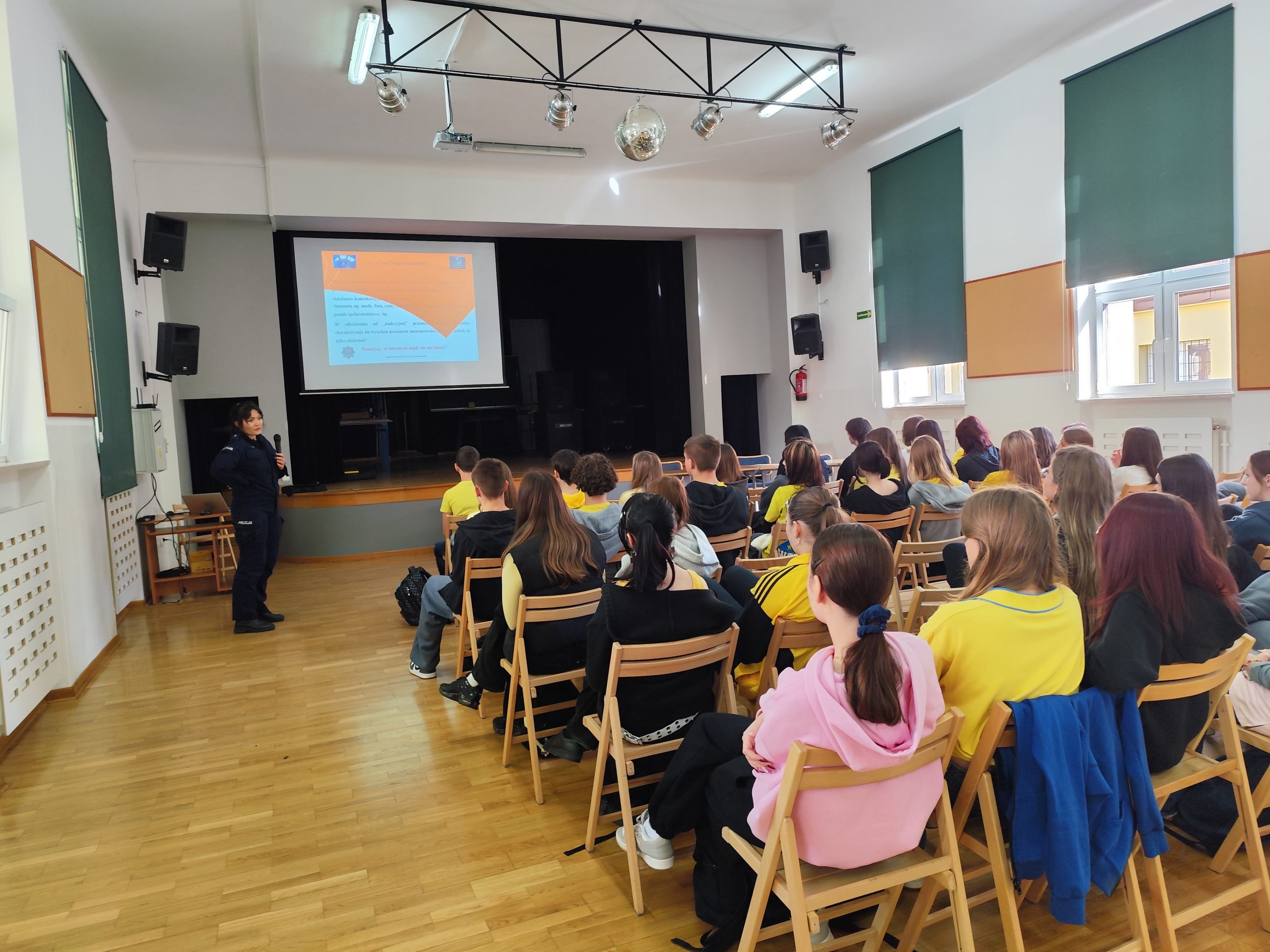 W dniu 1 października w ZS nr 2 w Lubartowie odbyło się spotkanie z policjantką, komisarz Jagodą Maj, poświęcone tematowi cyberzagrożeń oraz hejtu rówieśniczego. Podczas prelekcji uczniowie dowiedzieli się, jakie niebezpieczeństwa mogą czyhać na nich w Internecie, jak rozpoznawać i reagować na cyberprzemoc oraz gdzie szukać pomocy w przypadku bycia ofiarą hejtu. Spotkanie miało charakter edukacyjny oraz było jednym z działań szkoły w ramach Tygodnia Przeciwdziałania Przemocy Rówieśniczej. Dziękujemy p. komisarz Jagodzie Maj za ciekawą i niezwykle ważną prelekcję.