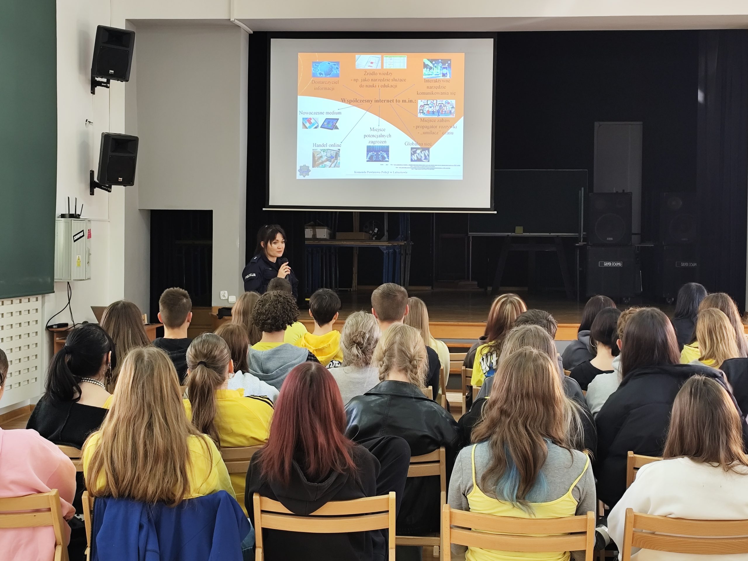 W dniu 1 października w ZS nr 2 w Lubartowie odbyło się spotkanie z policjantką, komisarz Jagodą Maj, poświęcone tematowi cyberzagrożeń oraz hejtu rówieśniczego. Podczas prelekcji uczniowie dowiedzieli się, jakie niebezpieczeństwa mogą czyhać na nich w Internecie, jak rozpoznawać i reagować na cyberprzemoc oraz gdzie szukać pomocy w przypadku bycia ofiarą hejtu. Spotkanie miało charakter edukacyjny oraz było jednym z działań szkoły w ramach Tygodnia Przeciwdziałania Przemocy Rówieśniczej. Dziękujemy p. komisarz Jagodzie Maj za ciekawą i niezwykle ważną prelekcję.