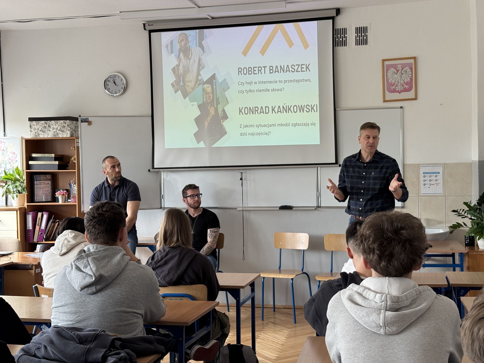 Podczas spotkania w II LO zostały poruszone bardzo ważne tematy dotyczące zjawiska hejtu, zagrożeń w sieci i cyberprzestępczości, uświadomienia uczniom odpowiedzialnej komunikacji w internecie, wpływu hejtu na zdrowie psychiczne młodych ludzi, skutecznych sposobów reagowania na przemoc słowną oraz tworzenia świadomych relacji rówieśniczych.