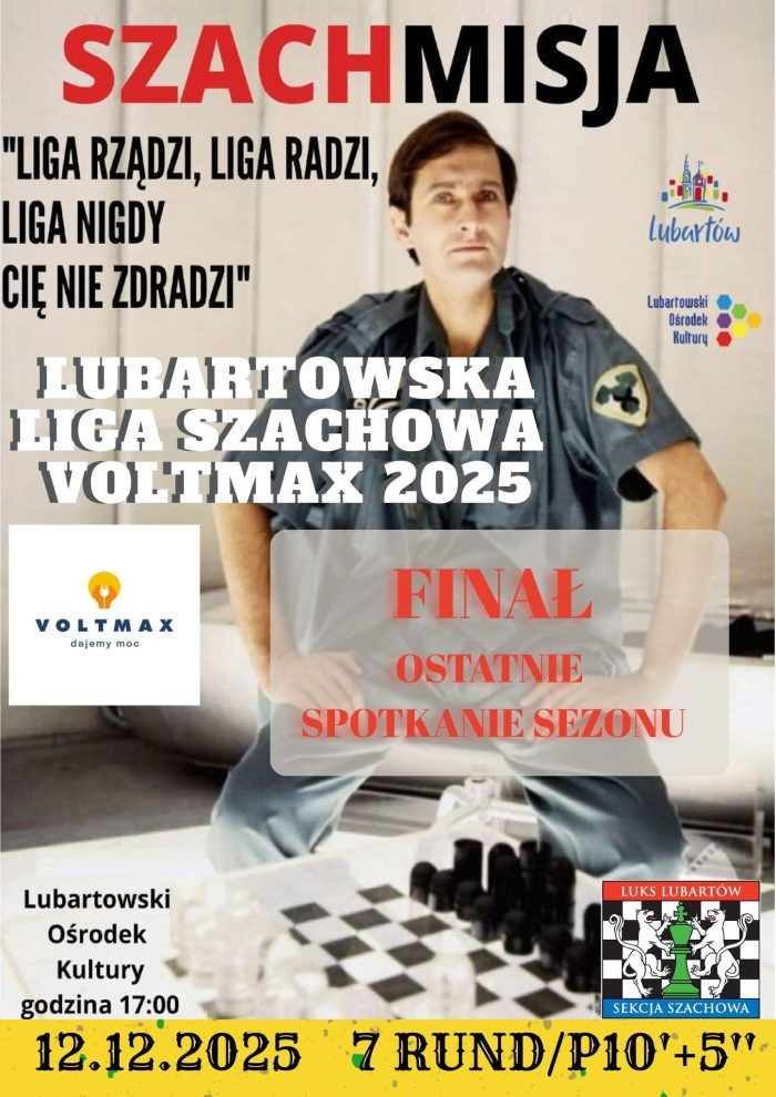 Ostatnia Lubartowska Liga Szachowa Voltmax już dziś o godz. 17:00. Lubartowski Ośrodek Kultury zaprasza na ostatnie taktyczno – strategiczne spotkanie – 7 rund.